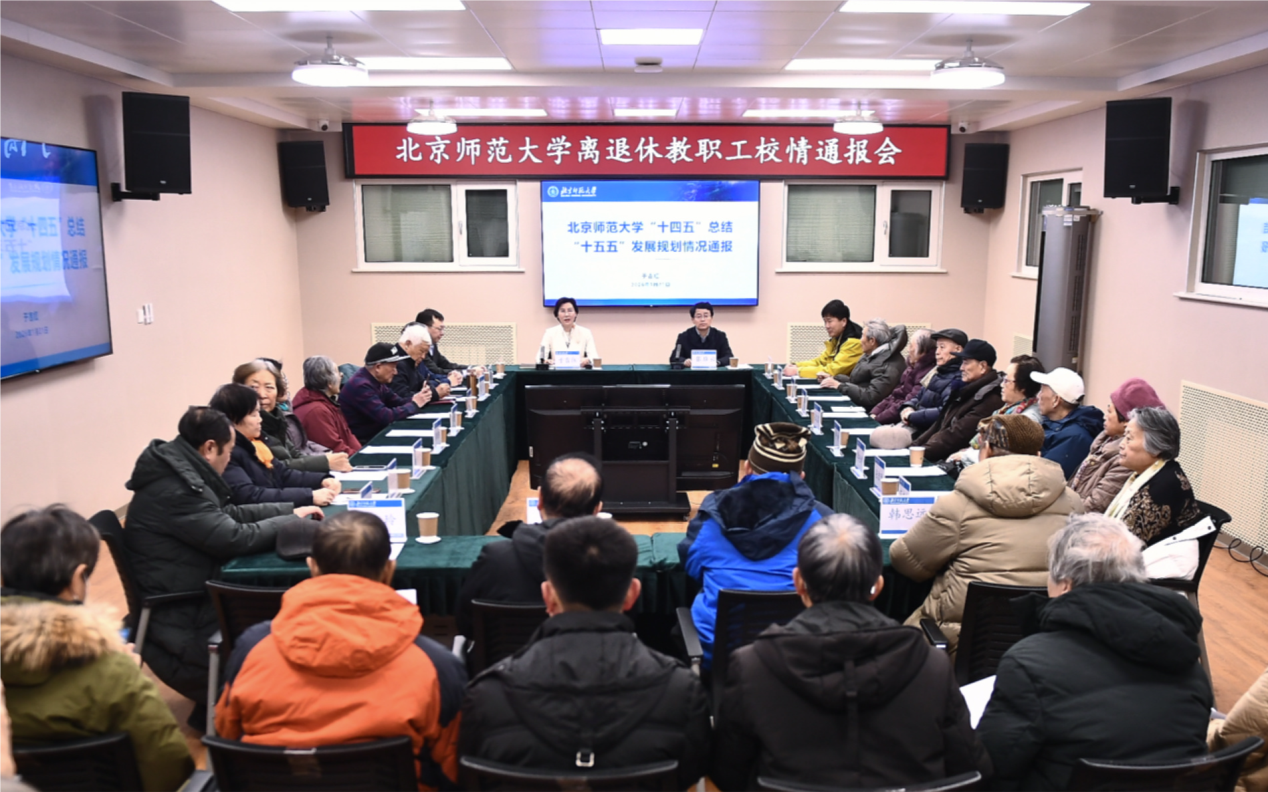 为深入贯彻学校关于做好离退休人员关怀关爱的重要部署,吸纳桑榆智慧,凝聚发展合力,1月21日上午,北京师范大学在离退休乐育活动站召开离退休教职工校情通报会。校长于吉红出席会议并通报校情,离休干部代表、离退休教职工党支部书记代表、二级单位离退休教职工代表和学校关工委委员等50余人参加会议,党委/校长办公室、离退休工作处负责同志列席参会。校党委副书记张雁云主持会议。