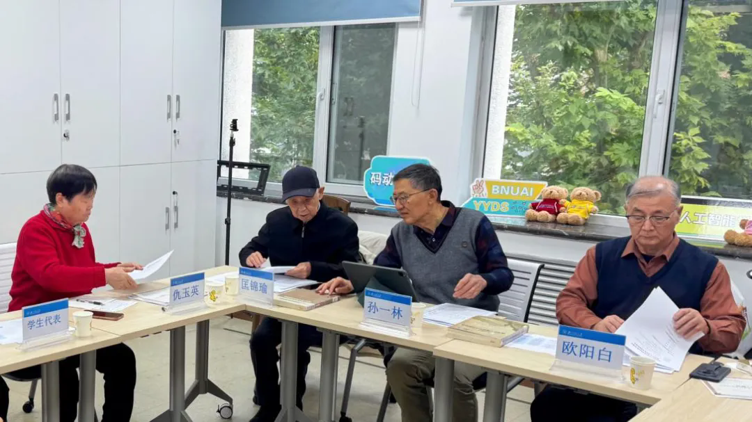 2025年10月23日上午,北京师范大学人工智能学院关工委在海淀校园电子楼302B会议室举行座谈会,会议围绕“信息学科发展70周年暨建院30周年”历史溯源展开。人工智能学院关心下一代工作委员会的四位退休教师匡锦瑜、欧阳白、孙一林、仇玉英应邀重返学院,与师生代表一同回顾学科和学院发展的光荣历史,展望发展的新篇章。学院党委书记廖英主持会议,院史工作组教师代表叶青、赵爽、张月与学生代表参会。