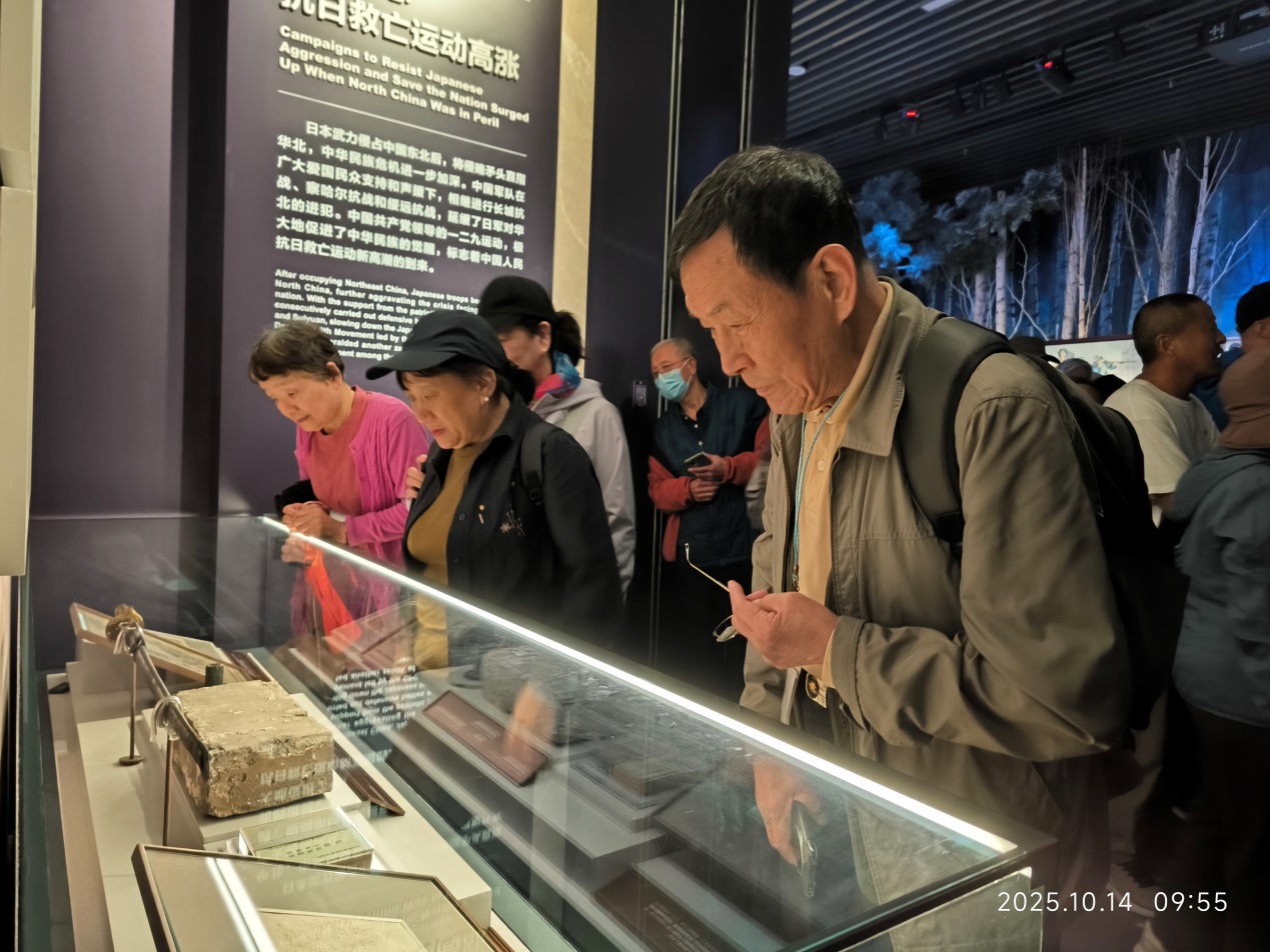 参观过程中,离退休教职工们聆听讲解,认真回顾了十四年抗战艰苦卓绝的历程,驻足细看一件件从硝烟中走来的文物证据,慢步感受一段段烽火中涌现的壮烈故事。从史料中深悟和平之珍贵,从叙述中体会英雄之可敬。离退休教职工还集体前往卢沟桥,在历史现场深切缅怀奋勇抗敌的将士们。