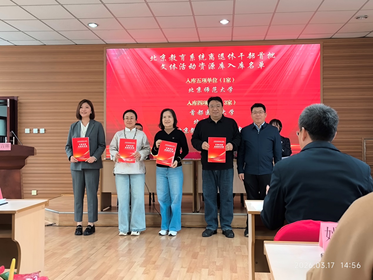 会上,北京教育老干部活动中心领导做了总结汇报,并重点部署了2026年北京教育系统老同志文体活动重点工作。北京市教工委离退休干部处主要负责同志向北京教育系统离退休干部首批文体活动资源入库单位颁布了“资源库手册”,我校本次入库5个项目,为首批最多入库单位。张瑞玲同志作为优秀单位代表,做了“挖掘利用学校优质资源 提升老同志文化养老品质”为主题的交流发言。