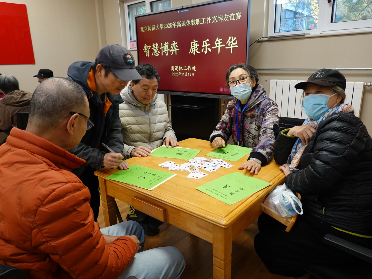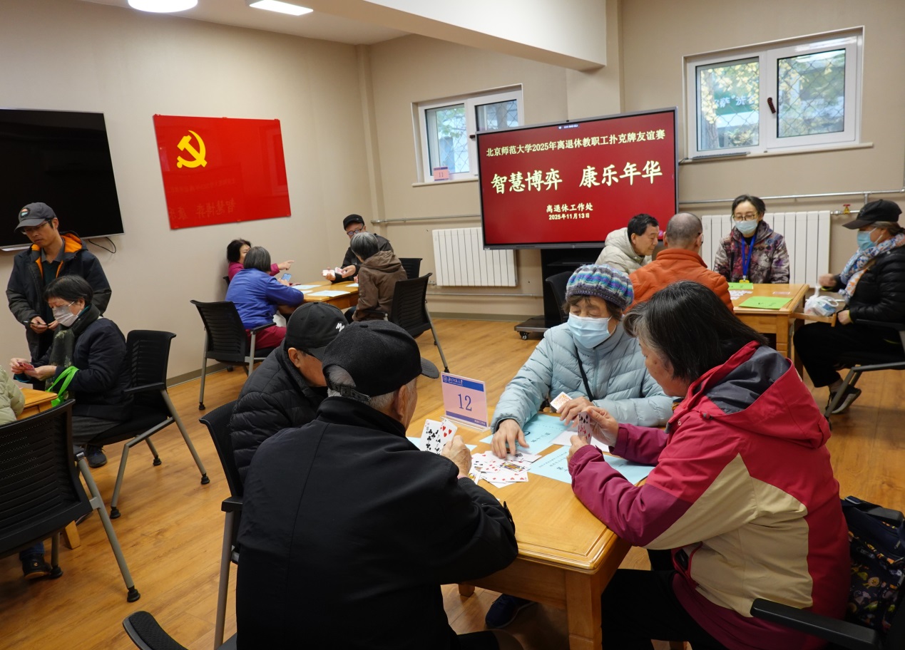 为丰富我校离退休教职工文化生活,11月13日上午,我处举办了“智慧博弈 康乐年华——2025年北京师范大学离退休教职工扑克牌比赛”。参加活动人数260余人,参赛的老同志们精神矍铄,本着“友谊第一 比赛第二”的态度积极踊跃地参与其中,乐在其中。